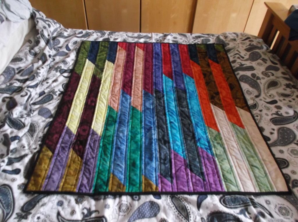 It looks cleverer than it is, and as you will see, was more or less an accident. It's a 'jelly roll race' quilt- and if you youtube search it you will find how-to videos but actually they are pretty simple as a rule, so naturally I had to make it more complicated.